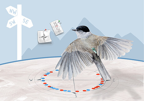Eurasian blackcaps (Sylvia atricapilla) are common breeding birds across Europe, and exhibit a remarkably broad spectrum of behavioural variation in migratory status and orientation direction. Phenotypic variation across populations ranges from residents to short-, medium- and long-distance migrants. In addition, migrants exhibit variation in migratory orientation strategies and form so-called migratory divides, i.e. areas where neighbouring populations breeding in close proximity have distinct migratory routes and non-breeding grounds. Blackcaps are distributed continuously across the central European migratory divide, with breeding populations in Europe and overwintering areas in southern Iberia and northern Africa. In autumn, populations breeding west of the divide migrate southwest (SW) around the Mediterranean Sea, while populations east of the divide migrate southeasterly (SE). In addition, since the 1960s, a growing number of birds breeding in central Europe migrate northwest in autumn to overwinter in the British Isles, possibly because of the milder wintering conditions.