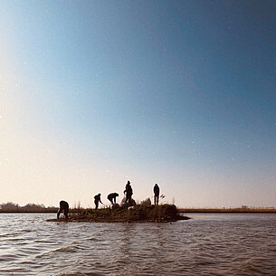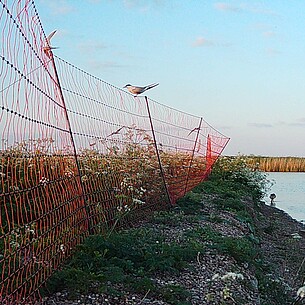 Since 2024, we are collaborating with the National Park of Lower Saxony and the Naturschutzstiftung FWW to restore breeding habitat for terns and other meadow- and waterbirds using a clay pit in Augustgroden. In March 2024, we teamed up with a large number of volunteers to prepare the islands in the clay pit for the birds. We spent various long weekends trimming back the vegetation and building electric fences to keep potential predators out. Trail cameras placed on site clearly showed that the birds were grateful and numerously appearing during the early season, even courtshipping in front of the cameras. The vegetation, however, showed more tenacity than we had imagined, and claimed back the islands. This taught us that we need to come better prepared, such that we are now working on various other solutions, adopting an experimental approach to see what the birds would prefer us to do for future breeding seasons.