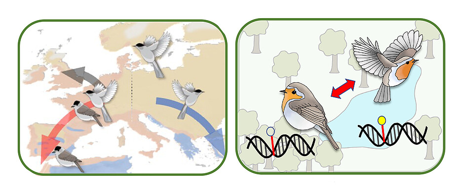 In order to identify individual variation we map these precise and accurately quantified trait characteristics to genotype: In the European robin and blackbird, we focally investigate the propensity to migrate, specifically patterns of partial migration, i.e. populations that comprise migratory individuals that leave the breeding range in autumn and return in spring, and resident individuals that stay in the breeding area year round.